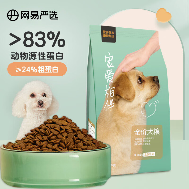 网易严选【官方授权】宠爱相伴 冻干三拼全价狗粮成犬幼犬通用型宠物主粮 宠爱相伴犬粮2.5KG 2包