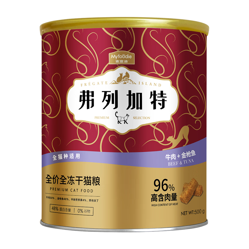 弗列加特全价鲜肉猫粮冻干生骨肉增肥可当奖励零食美短英短 牛肉金枪鱼味500g
