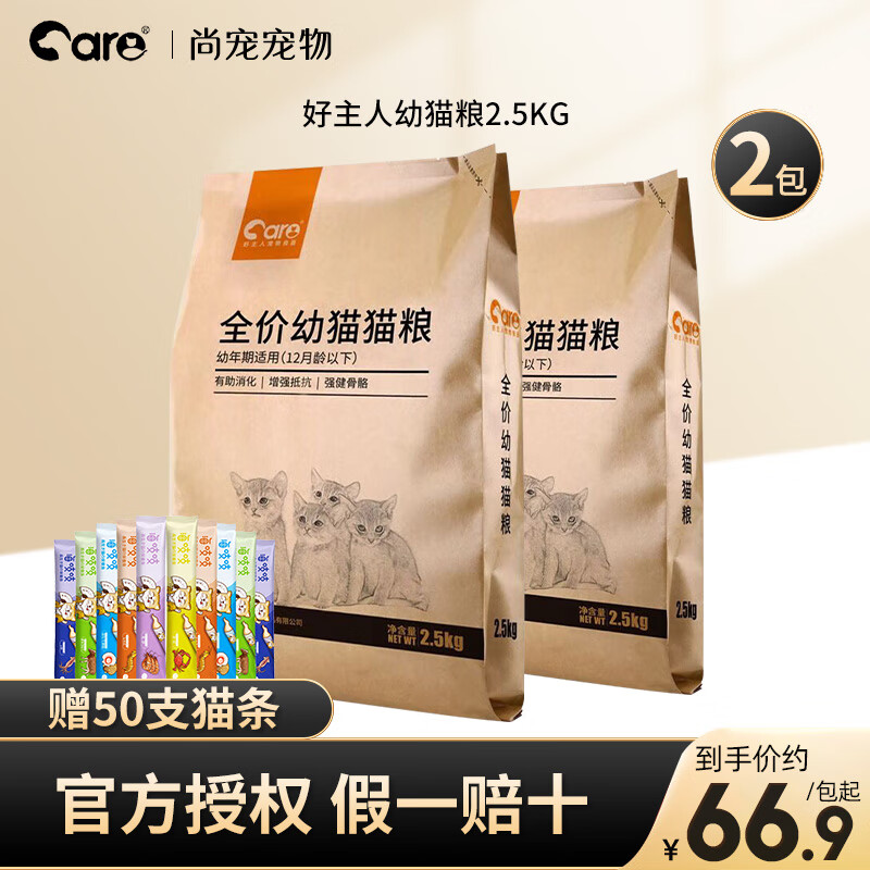 好主人(CARE)猫粮2.5kg 成猫猫粮幼猫猫粮金装全价冻干猫粮无谷粮猫干粮猫主粮 【经典幼猫】2.5kg*2包