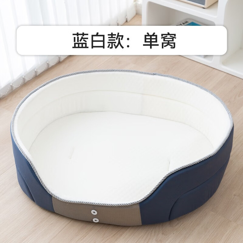 嬉皮狗(hipidog)狗窝四季通用可拆洗夏天凉窝大型犬金毛狗垫子狗狗床夏季宠物用品 拼接蓝白厚底窝 S-小号47*35*17cm(适用8斤内)