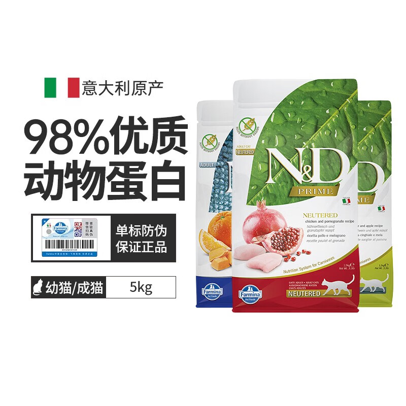 法米娜无谷低敏高蛋白成猫粮苹果猪肉鲱鱼甜橙鸭肉南瓜 鲱鱼甜橙【临期】 5kg