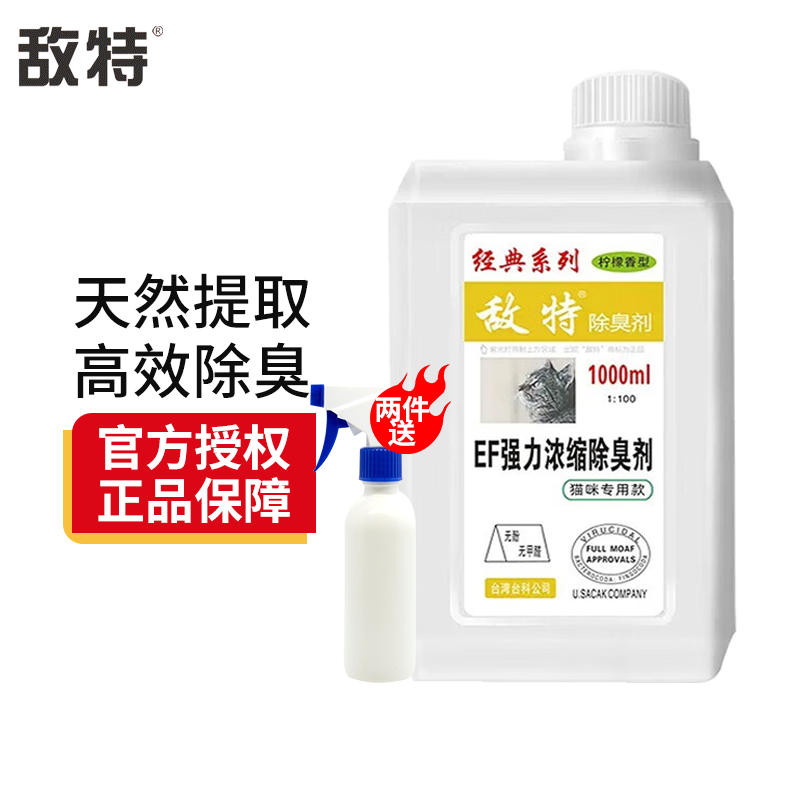 敌特 宠物消毒水剂除臭液狗狗除臭剂猫砂尿骚便臭室内去味除味用品 柠檬1000ML(猫专用)