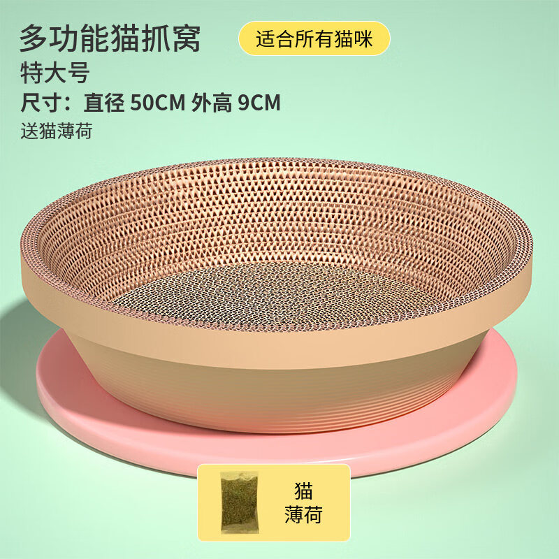 宠物玩具猫抓板窝不掉屑猫抓盆瓦楞纸猫咪玩具防猫抓磨爪板大 款特大号直径50CM(收藏 猫薄荷)
