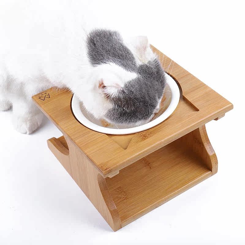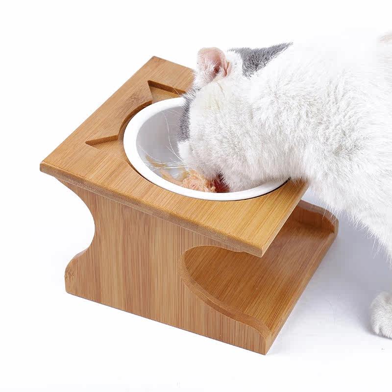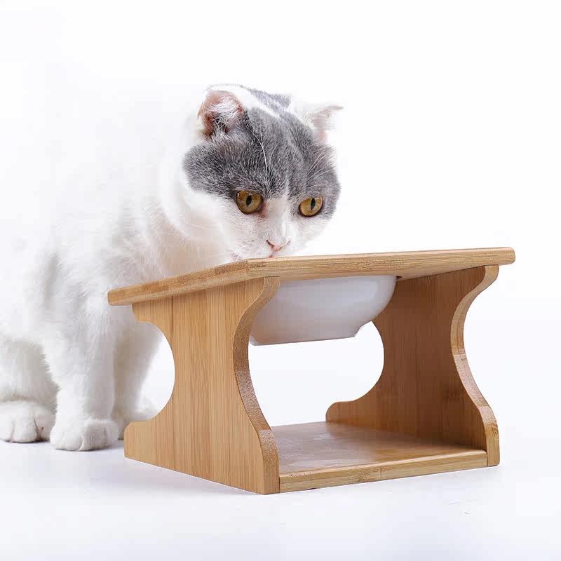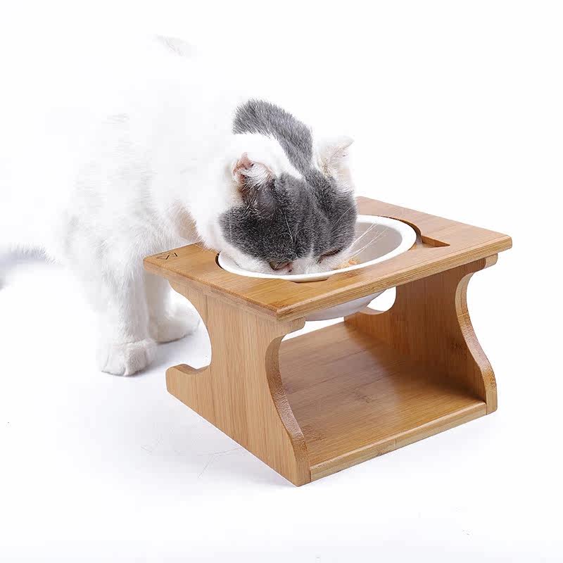 猫碗陶瓷双碗实木碗架斜口护颈椎防打翻猫小型犬猫咪通用猫咪用品
