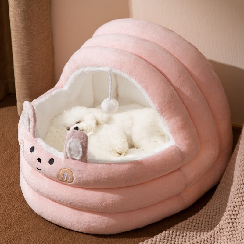 猫米猫窝狗窝四季通用小型犬泰迪可拆洗猫窝半封闭冬天保暖宠物用品床 粉色兔子摇篮窝 M-中型(建议15斤内)