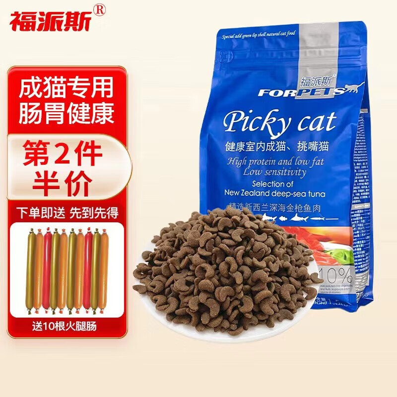 福派斯福牌斯猫粮成猫幼猫通用粮易消化吸收提升免疫力增肥发腮补充营养 1.5kg(第二件请拍6斤)