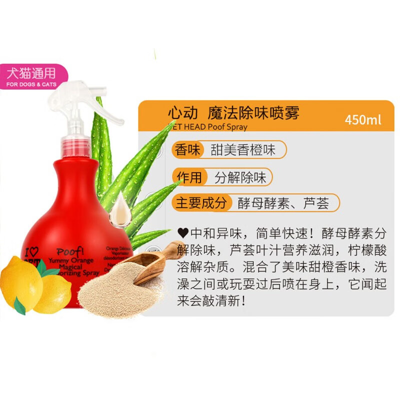美国进口I PET HEAD心动 狗狗沐浴露 宠物除螨美毛洗澡香波浴液 护爪油 猫狗通用 网红沐浴露 除味喷雾(香橙味)450ml