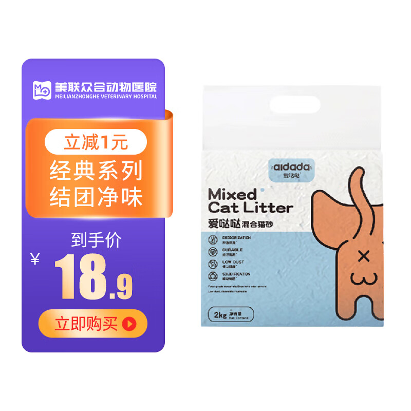 爱哒哒 猫砂混合猫砂 2.5KG*6包活性炭 芝芝茶颜豆腐猫砂混合猫沙高效吸味高效结团可冲厕所 混合猫砂2kg