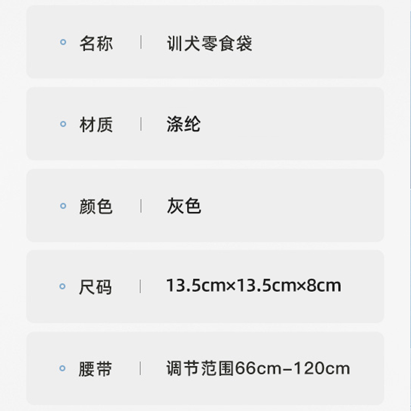 茨格曼 训狗装备 腰包零食包【灰色】金毛训练训犬狗狗器材狗包宠物食物遛袋包