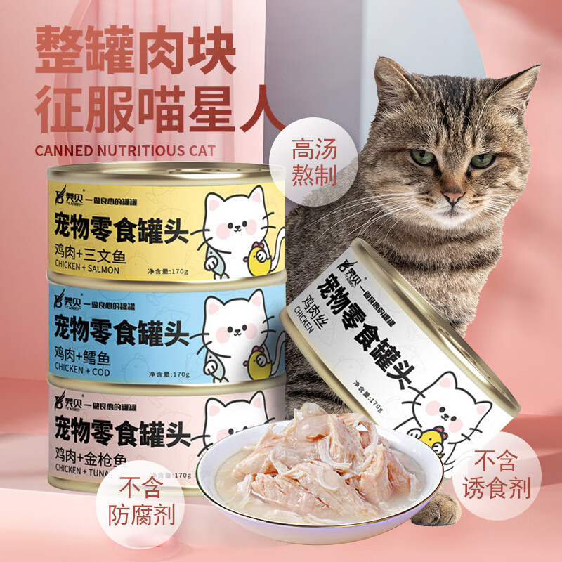 萌莳咕猫罐头主食罐170g幼猫成猫零食增肥营养湿粮整箱补充无诱食剂批发 高汤款鸡肉金枪鱼170g