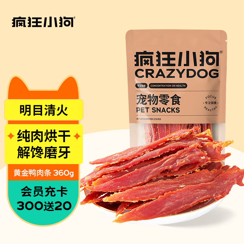 疯狂小狗 狗零食鸡肉干宠物鸡胸肉泰迪幼犬训练狗狗奖励磨牙棒 黄金鸭肉条360g
