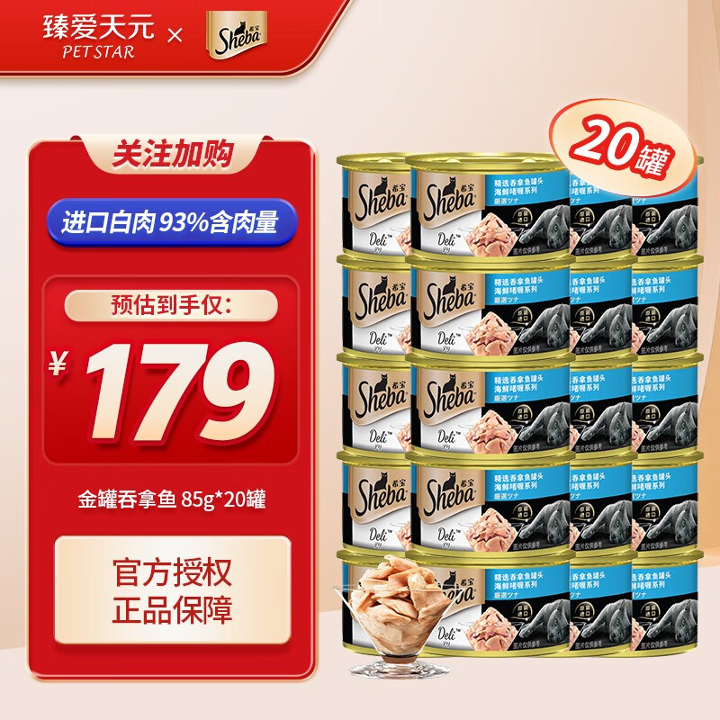 希宝(Sheba)猫罐头sheba猫湿粮猫零食 吞拿鱼 海鲜啫喱85g*20