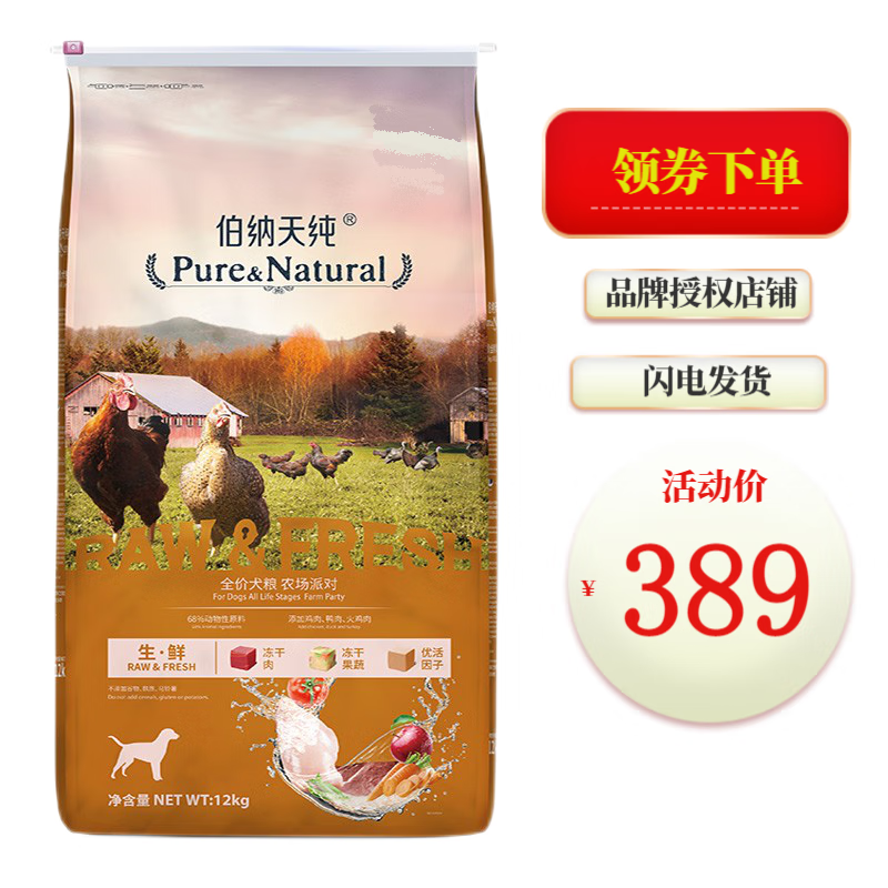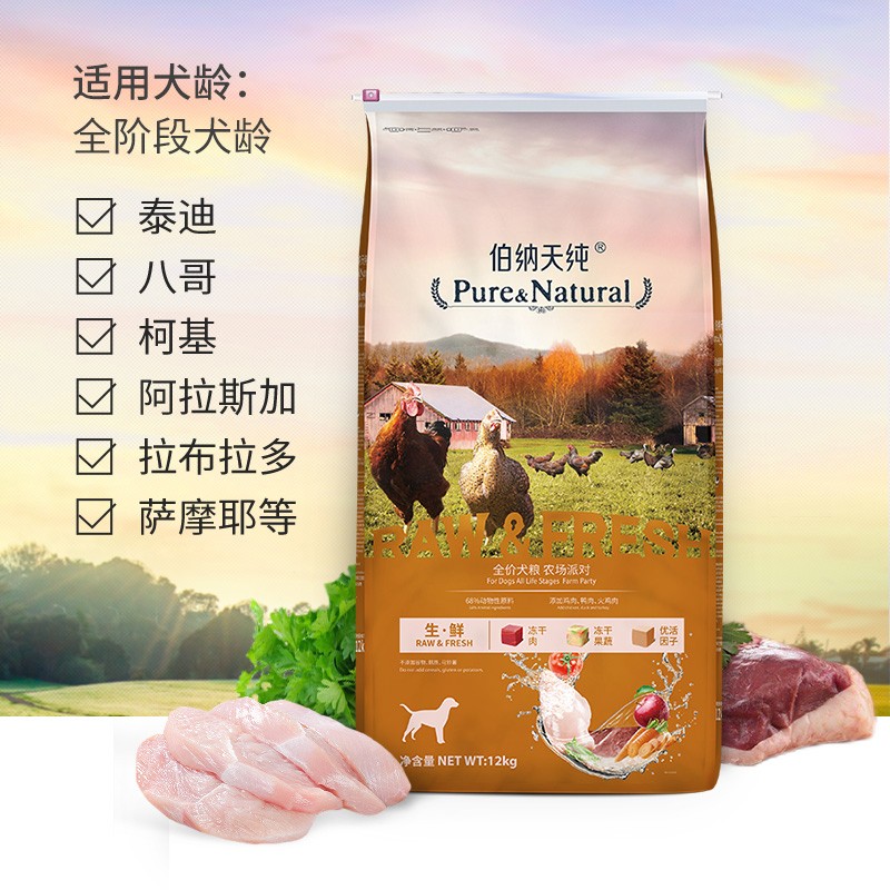 伯纳天纯 生·鲜系列深海御鲜全价全期宠物狗粮通用型博纳天纯狗粮犬粮12kg 农场派对12kg