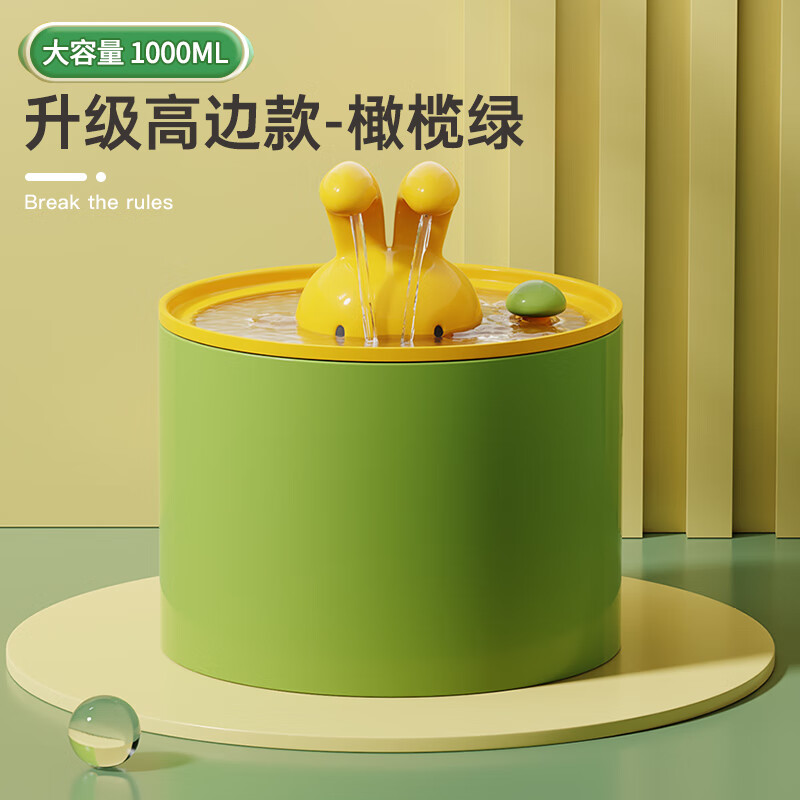 猫咪陶瓷饮水机自动循环流动喝水不湿嘴宠物饮水器狗狗水盆猫用品 升级高边款-橄榄绿【兔子款1L 防湿嘴】