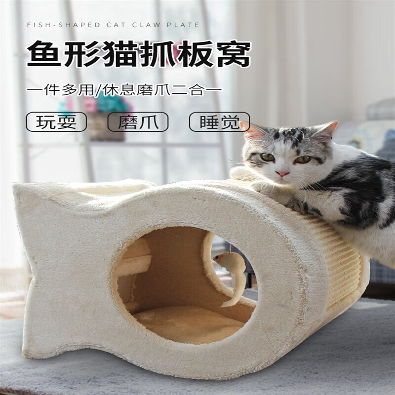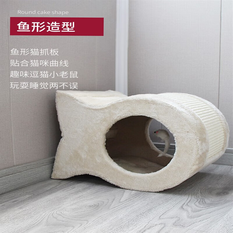 猫抓板剑麻磨爪器猫窝猫爪板窝不掉屑多功能立式猫玩具猫咪用品 米白色鱼形猫抓板窝