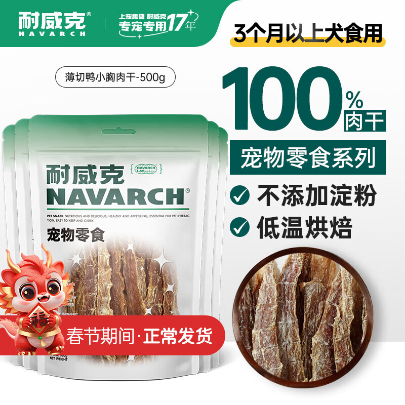 耐威克 狗狗零食 鸡鸭胸肉干 磨牙棒 成幼犬 宠物训练奖励 泰迪金毛比熊 薄切·鸭胸肉丨500g