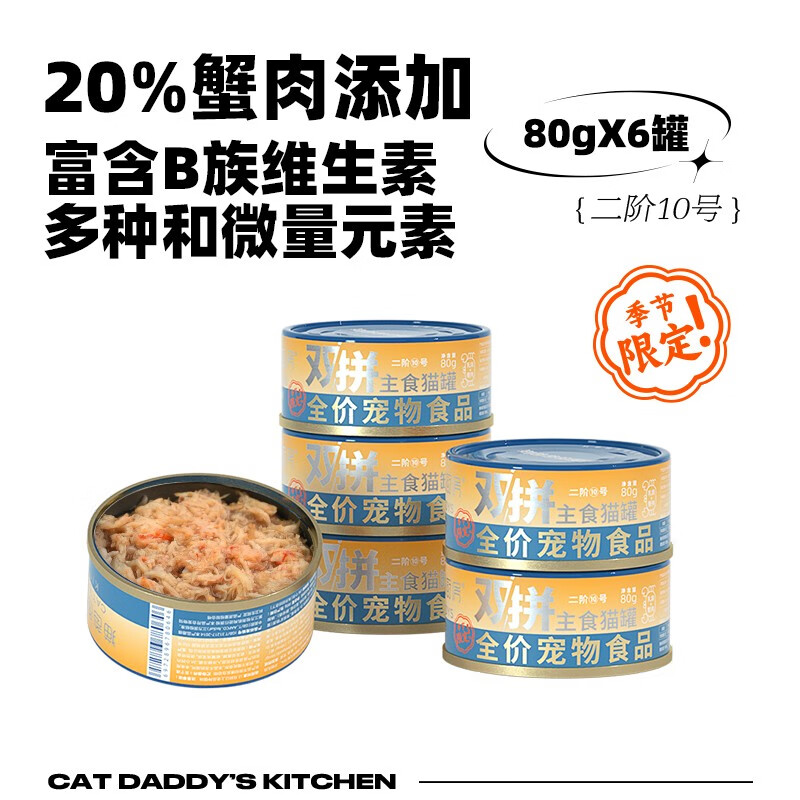 猫爸爸的厨房(THE CAT DADDY'S KITCHEN)猫湿粮二阶10号双拼主食罐兔肉补水营养增肥2月龄 幼猫成猫罐头 蟹肉双拼主食罐【6罐】