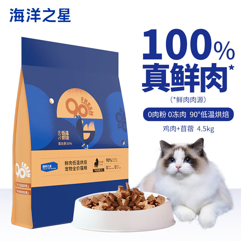 海洋之星(fish4dogs)猫粮 低温烘焙鲜肉猫粮 成猫幼猫全价猫干粮 【预售】鲜鸡肉 全价猫粮 4.5kg