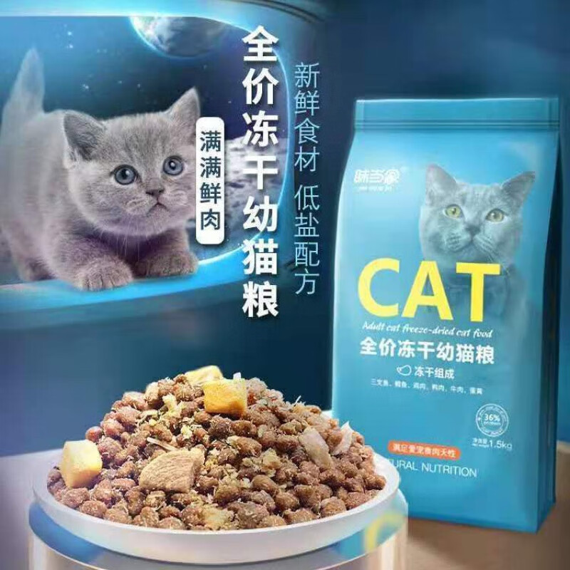 味当家冻干猫粮幼猫小猫孕猫成猫营养增肥发腮3斤装蓝猫全价粮 成猫3斤