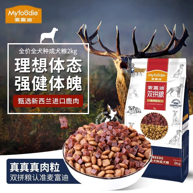 麦富迪 MYFOODIE麦富迪鹿肉双拼狗粮2kg通用型成犬粮泰迪金毛柯基通用型犬无谷 鹿肉双拼粮 全价全犬种成犬2kg