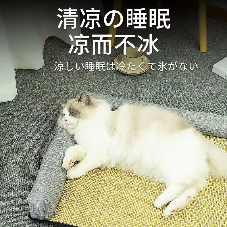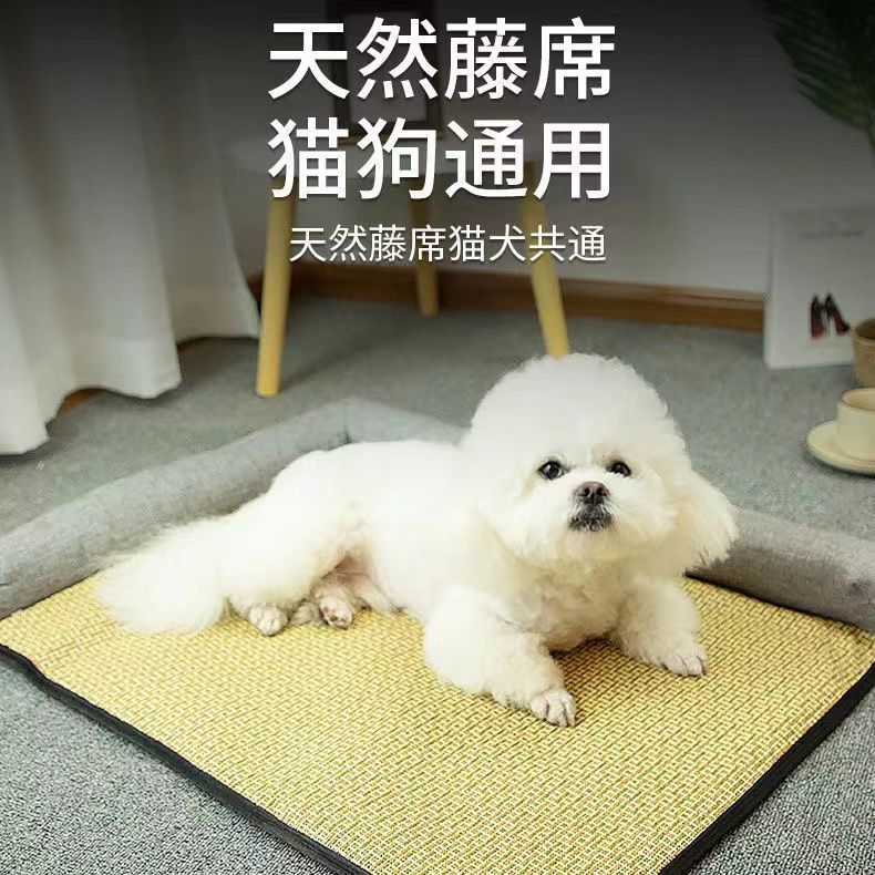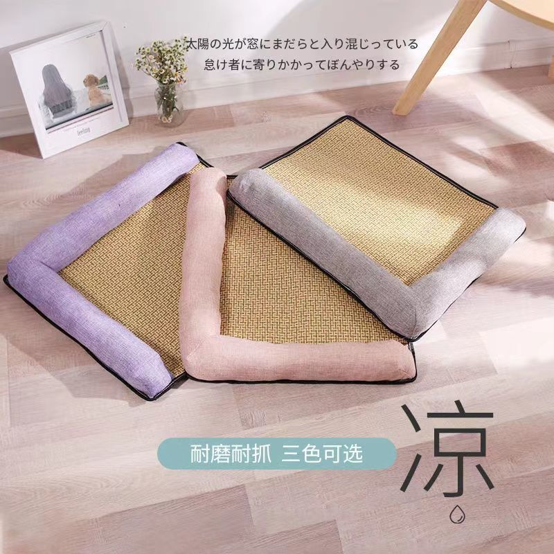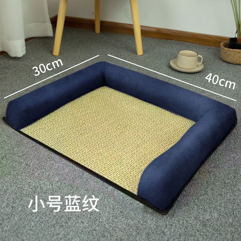 狗窝凉席垫子猫窝夏天藤席四季通用泰迪中小型凉窝垫子床宠物用品 新款U字型蓝黑条纹 小码40*30cm【建议3斤内宠物】