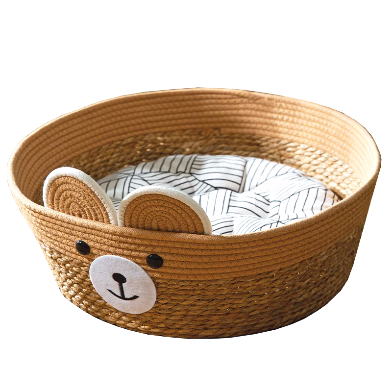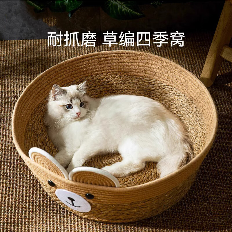 嬉皮狗(hipidog)藤编筐猫窝夏天猫咪凉窝草编狗狗窝夏季网红四季通用垫子宠物用品 可爱小熊-基础款(毛毡工艺) L--适合多只猫咪的家庭