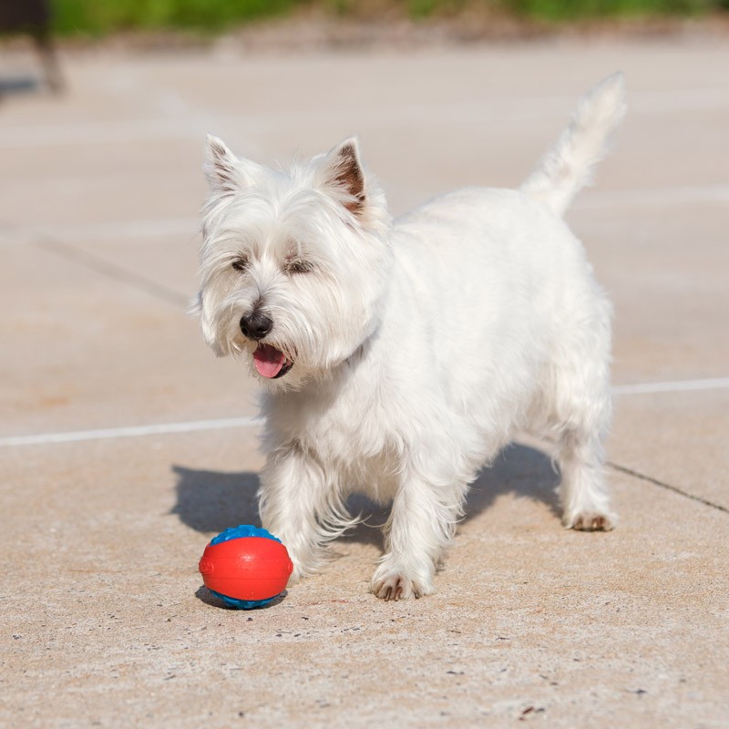 CAITEC狗狗玩具布面弹力球大狗玩具很硬实用力按压会发声较耐咬 小狗不适合 64177小号 红球蓝布面 7.5cm 适合中型犬