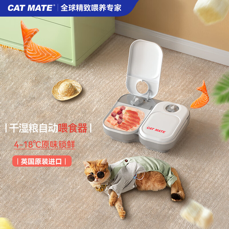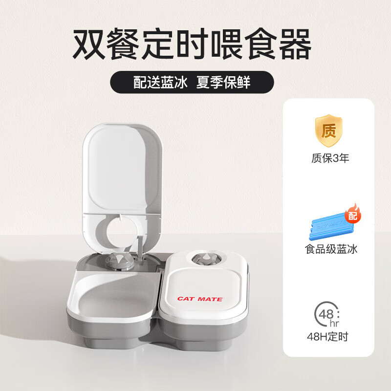 Catmate宠物自动鲜粮喂食器猫碗401CN 猫咪狗狗干湿粮罐头饭盒 蓝冰保鲜 适用2餐 猫狗通用 英国进口
