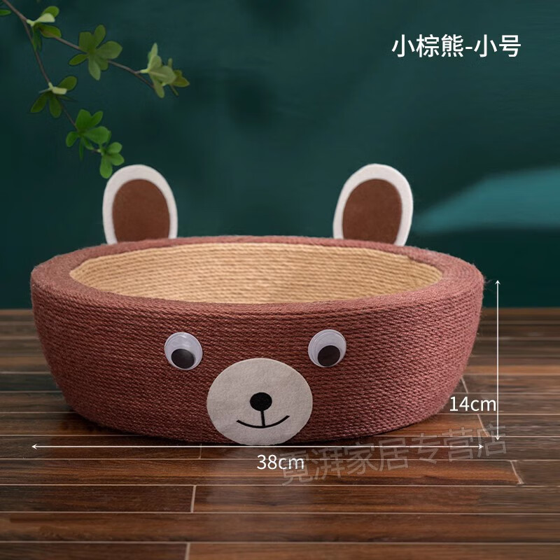 剑麻猫抓板耐磨不掉屑耐抓猫窝一体猫爪盘盆圆形大号猫咪磨爪 升级高围栏圆形全剑麻-小号棕熊款【加厚加重款】重量
