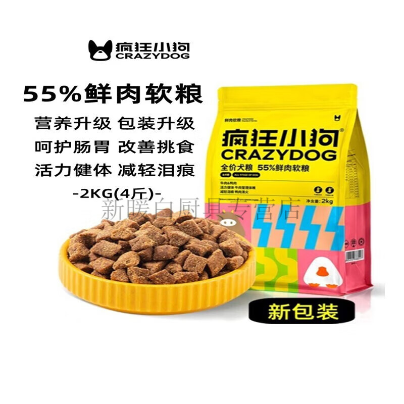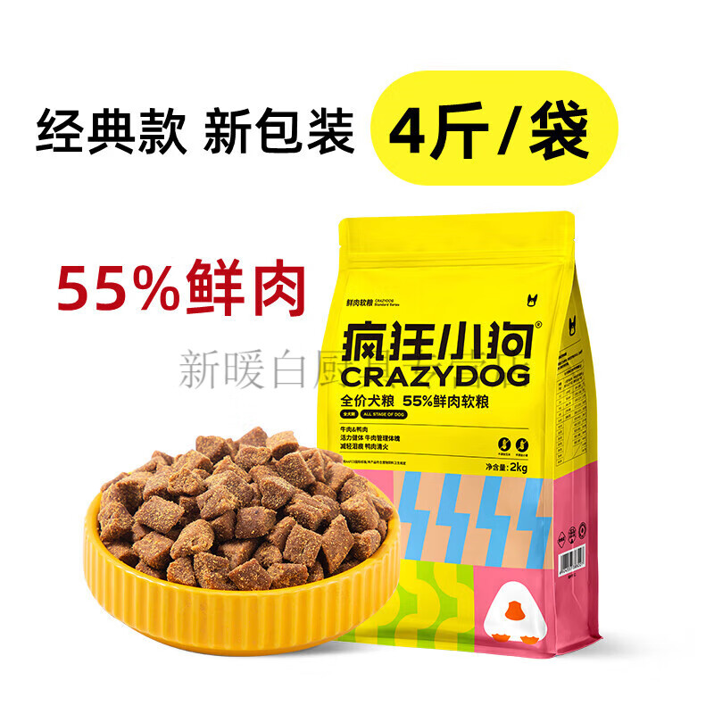 疯狂小狗55%鲜肉软粮70%狗粮成犬幼犬全价泰迪比熊老年营养 【4斤】经典款55%鲜肉软粮 0lb净重请看口味图