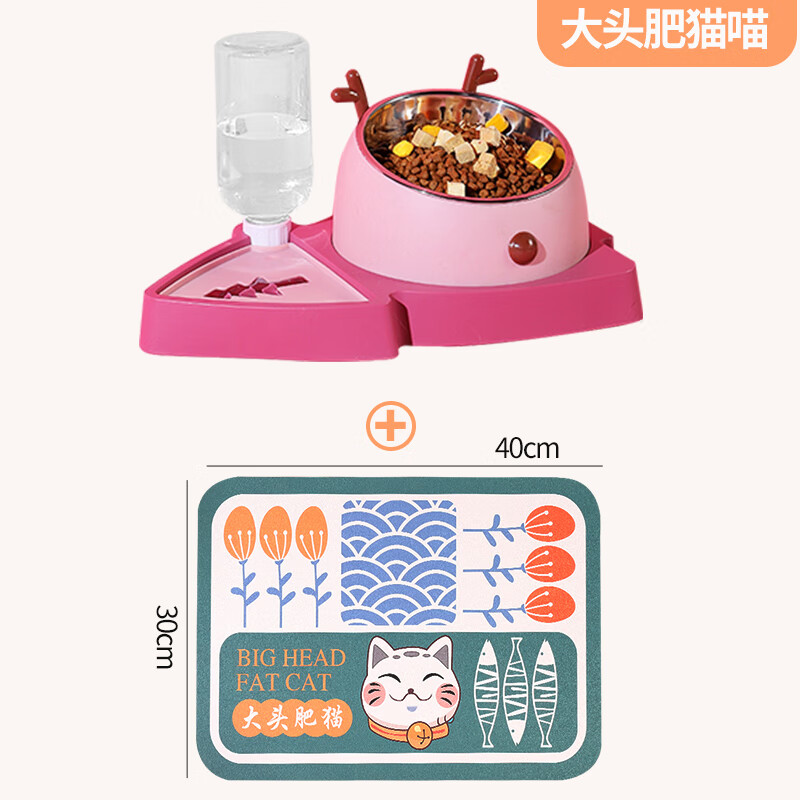 猫碗双碗自动饮水一体狗碗狗食盆护颈椎饭盆喝水狗狗猫咪宠物用品 【豆沙粉】可拆卸不锈钢碗 卡通餐垫【大头肥猫】 自动出水 550ml水瓶 2-3天不加水发货速度快