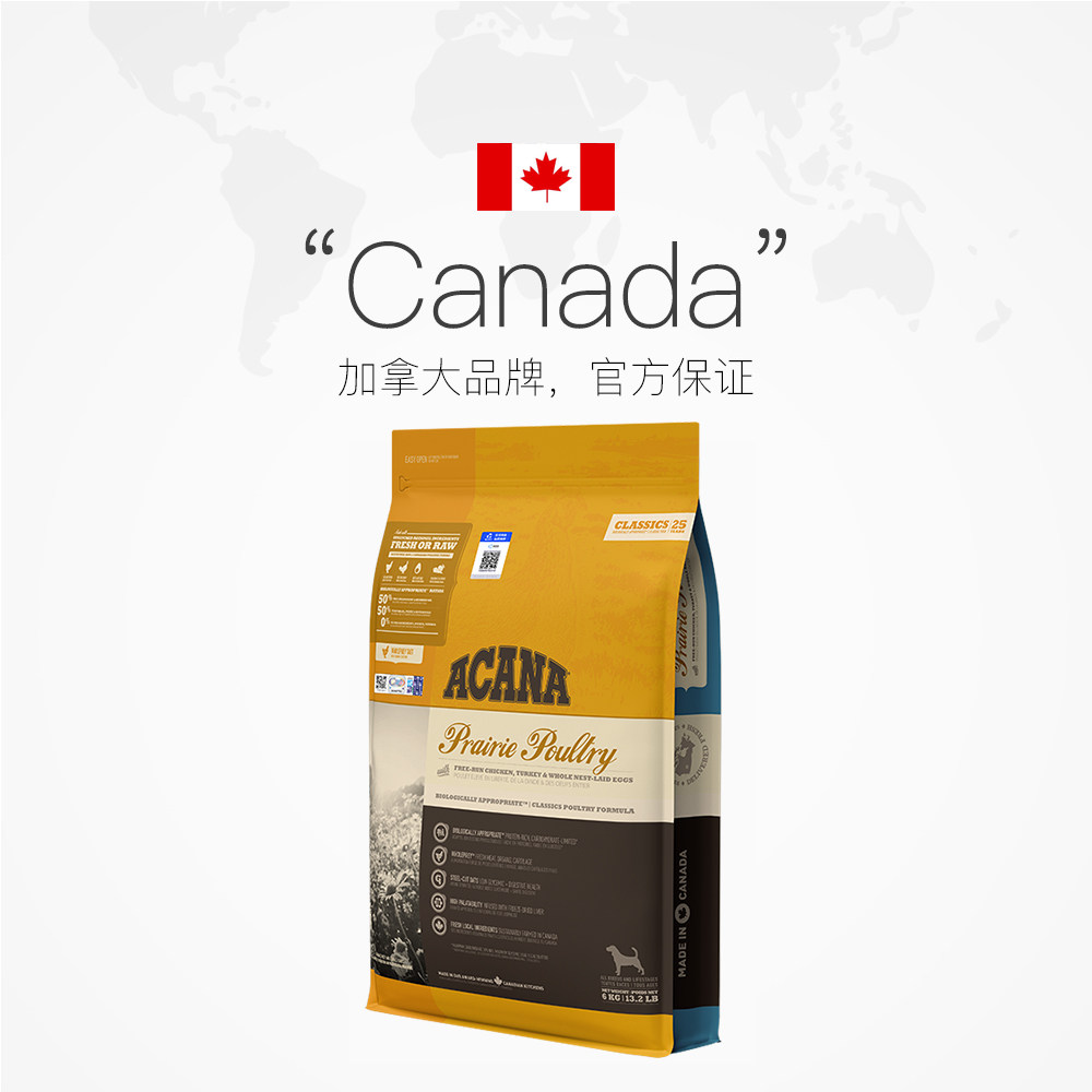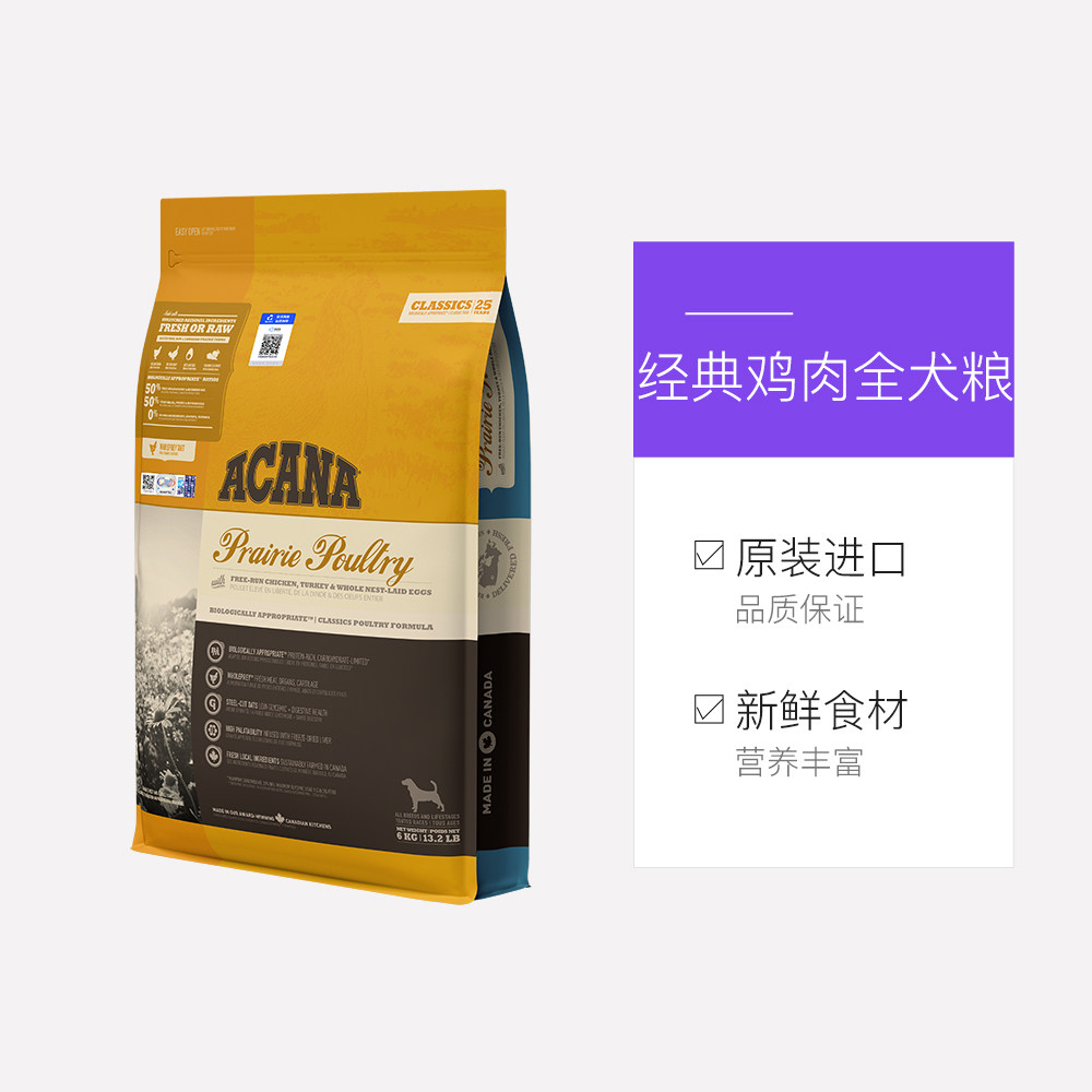 【直营】爱肯拿ACANA加拿大进口犬粮经典鸡肉配方成犬幼犬狗粮6KG