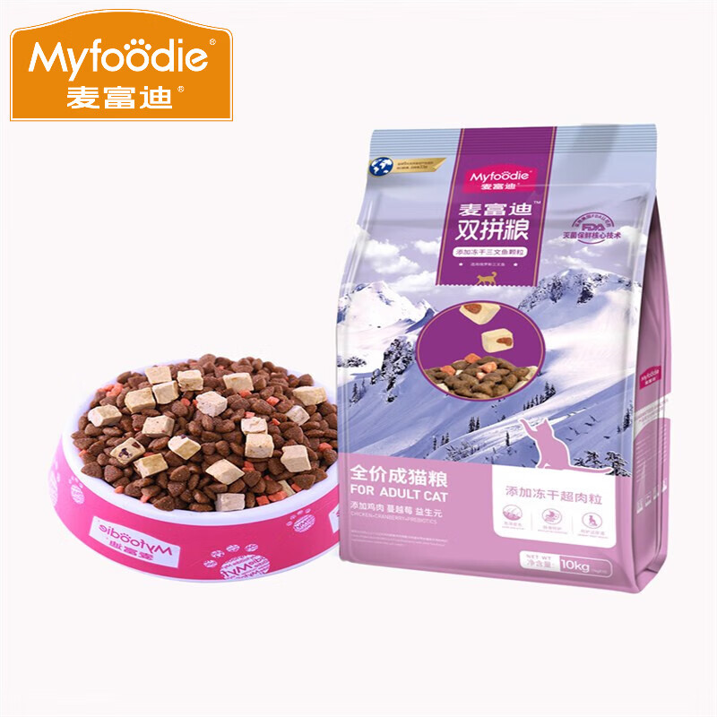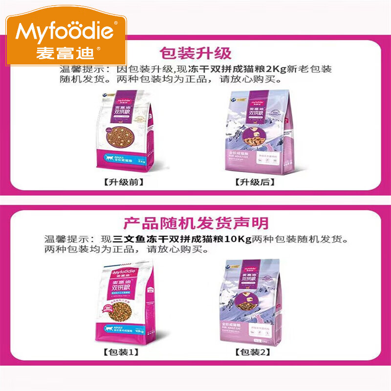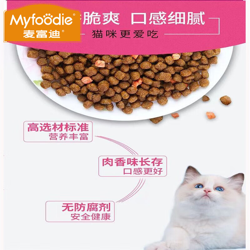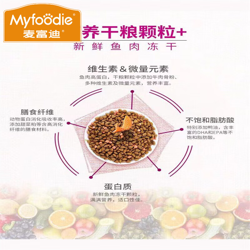 麦富迪(Myfoodie)麦富迪官猫粮成猫幼三文鱼冻干方双拼全价旗舰 三文鱼冻干成猫粮2kg 0.1lb /重量以选项为准