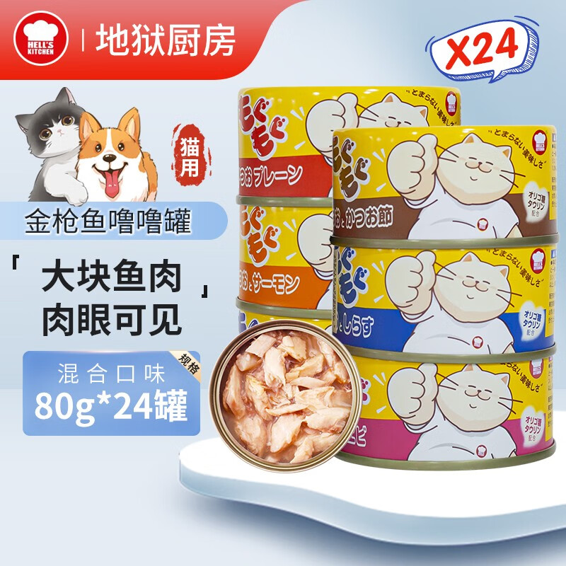 地狱厨房(Hell's Kitchen)噜噜罐金枪鱼猫罐头猫咪增肥发腮零食宠物罐头猫粮湿粮补水拌食 混合口味80g*24罐