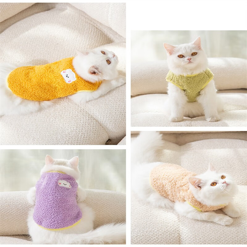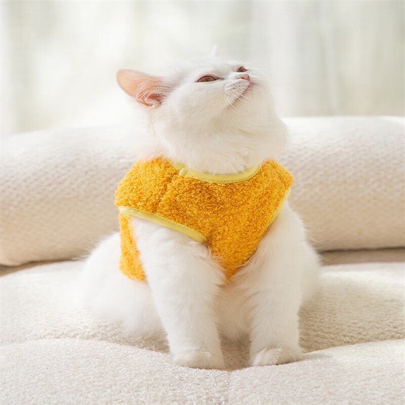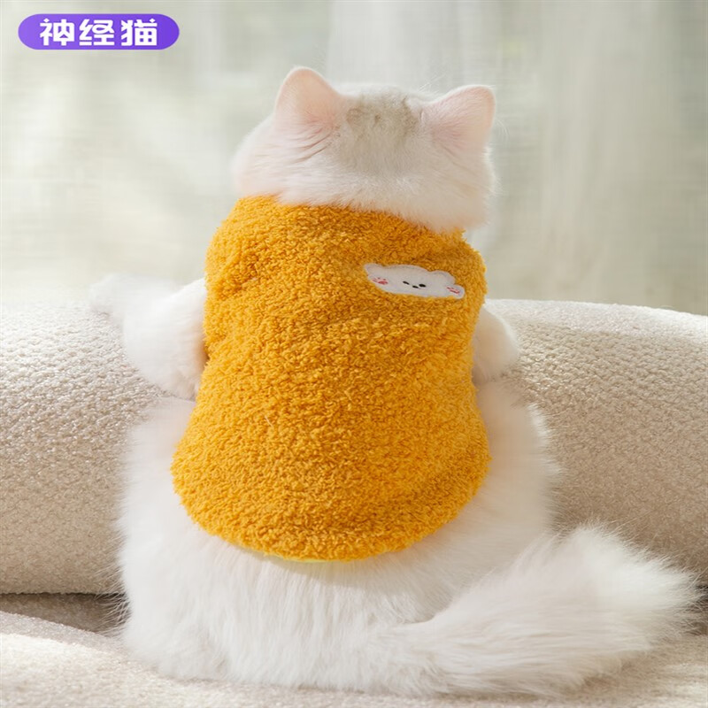 赣老头可爱绒衣小猫咪衣服无袖马甲保暖棉衣宠物布偶英短幼猫防掉毛冬季 黄色笑脸 XS胸围32cm建议体重1-3斤