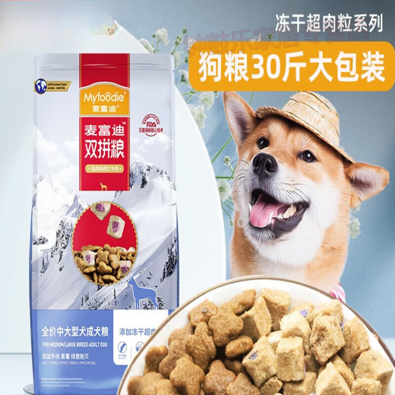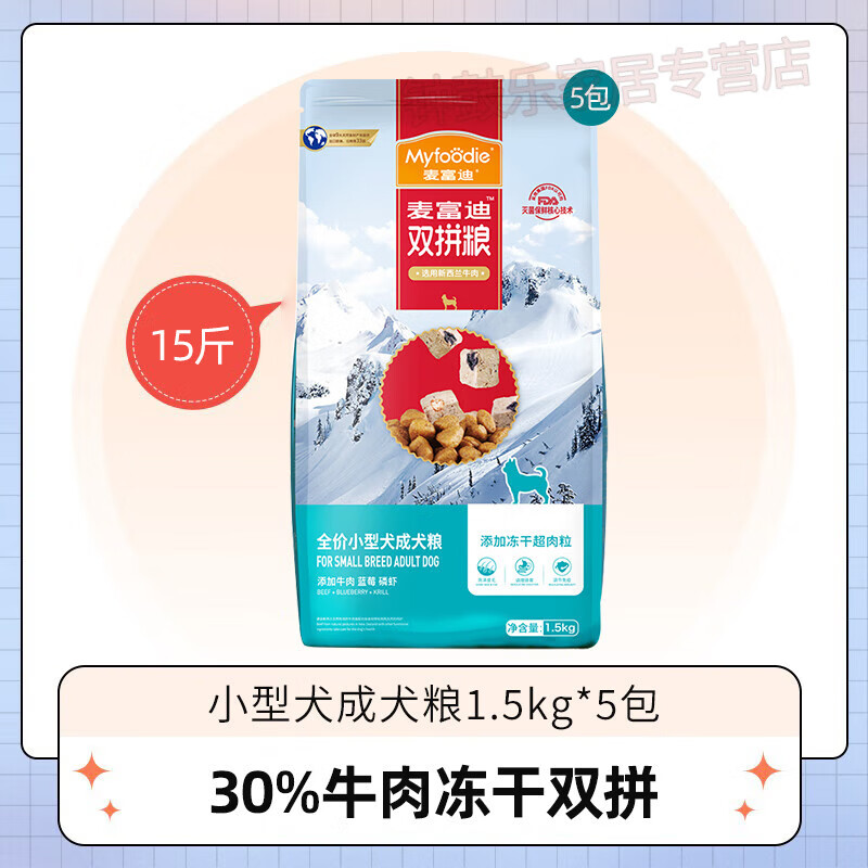 麦富迪(Myfoodie)麦富迪狗粮成犬30斤装泰迪金毛中大型犬专用犬粮小型犬狗粮7.5kg 【新西兰牛肉粒冻干】小型成犬 0lb