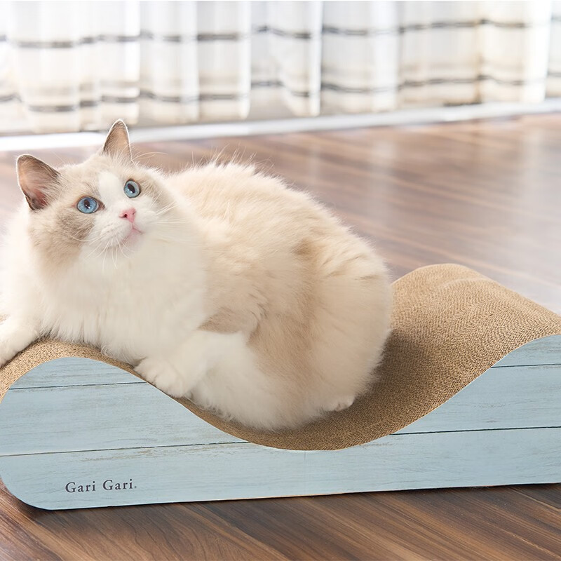 Necosekai猫咪世界GARIGARI贵妃榻枕头猫咪沙发猫抓板猫窝加强型瓦楞纸成猫幼猫磨爪耐磨 超宽复古蓝粉 宽34cm