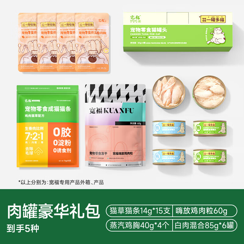 宽福猫咪零食猫罐头猫条冻干成幼猫猫粮猫砂化毛膏增肥发腮 白肉 冻干 猫条 鸡胸肉包 1包