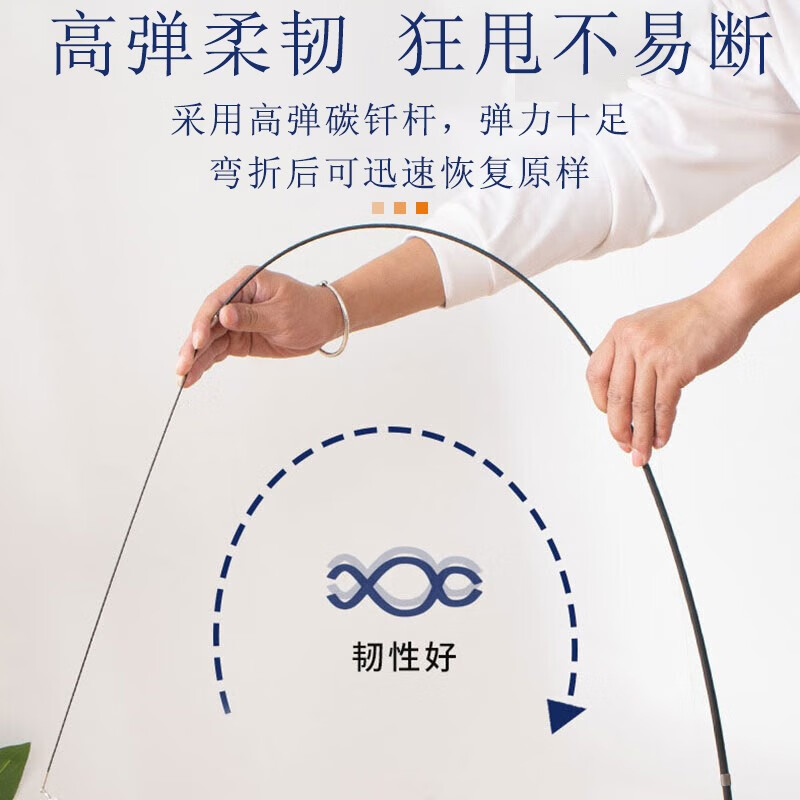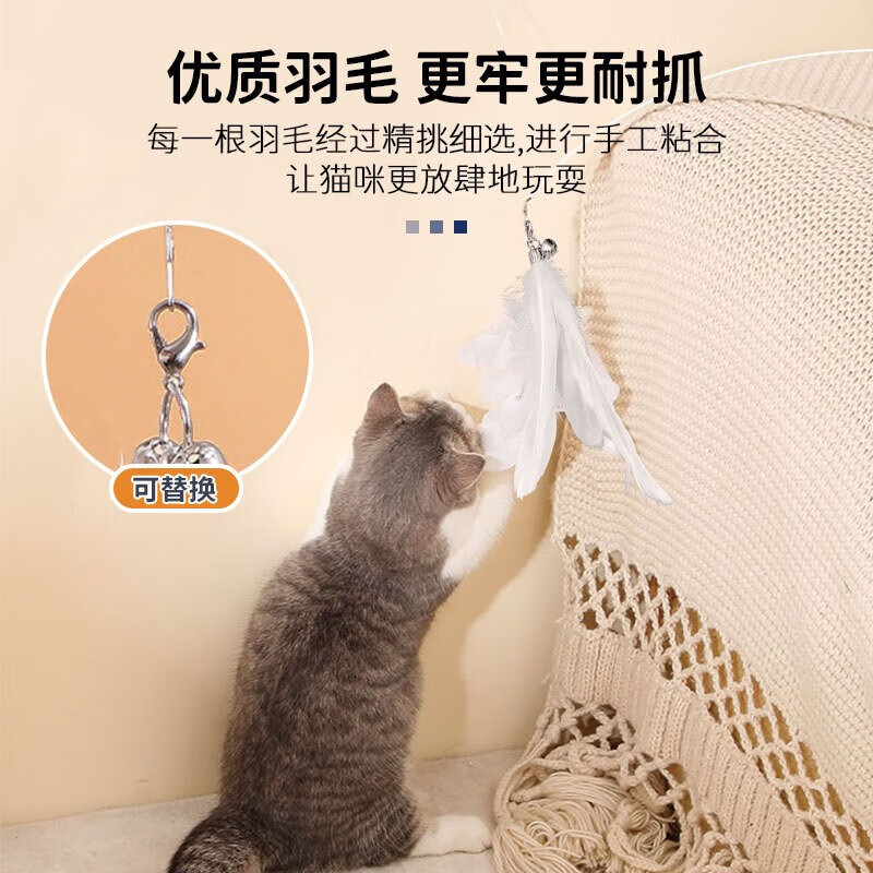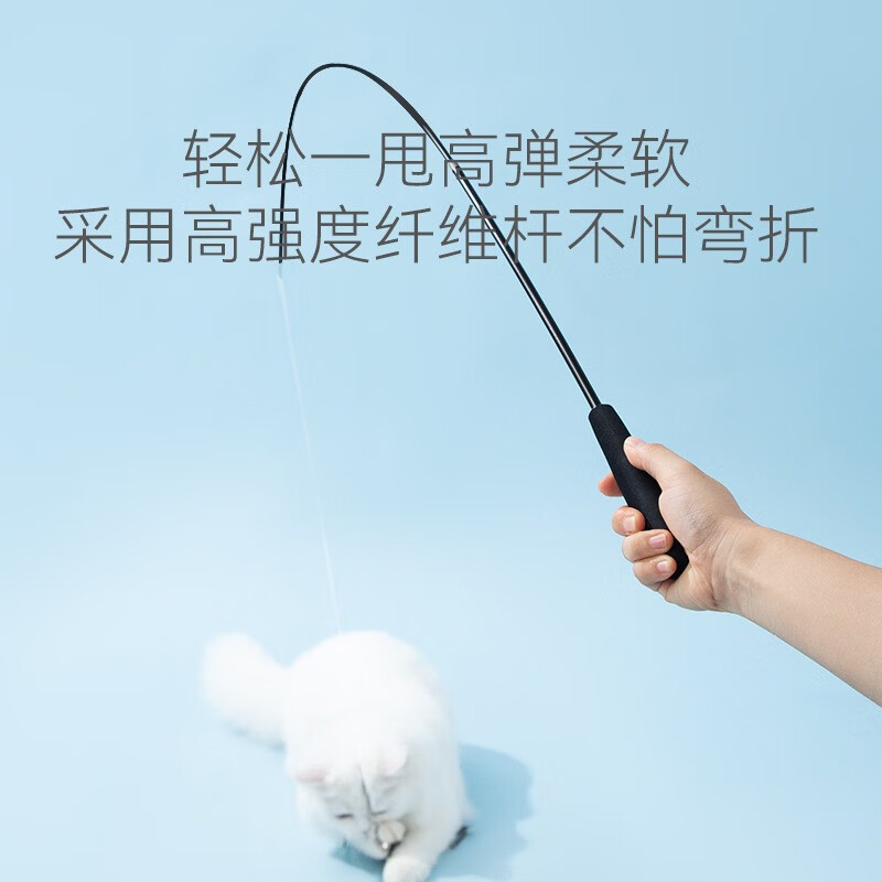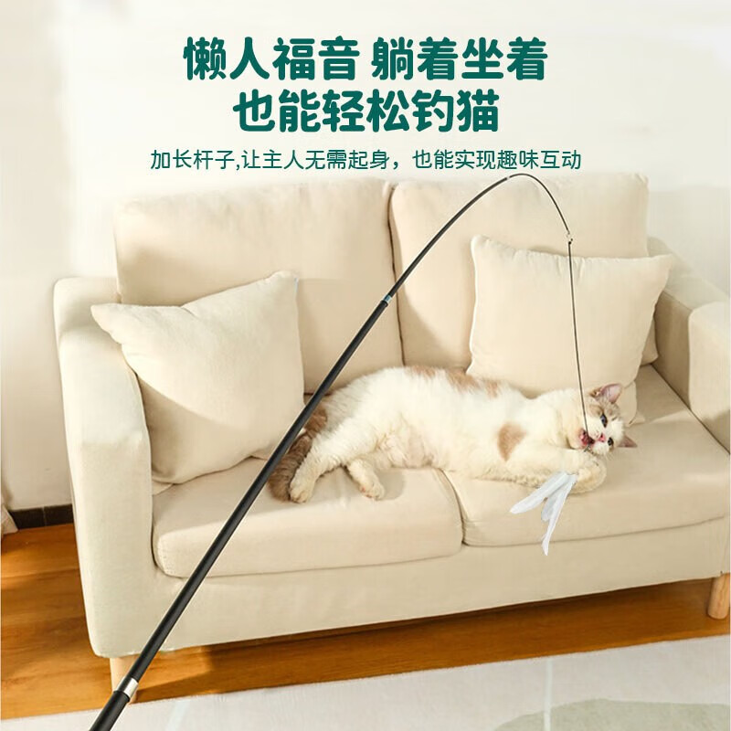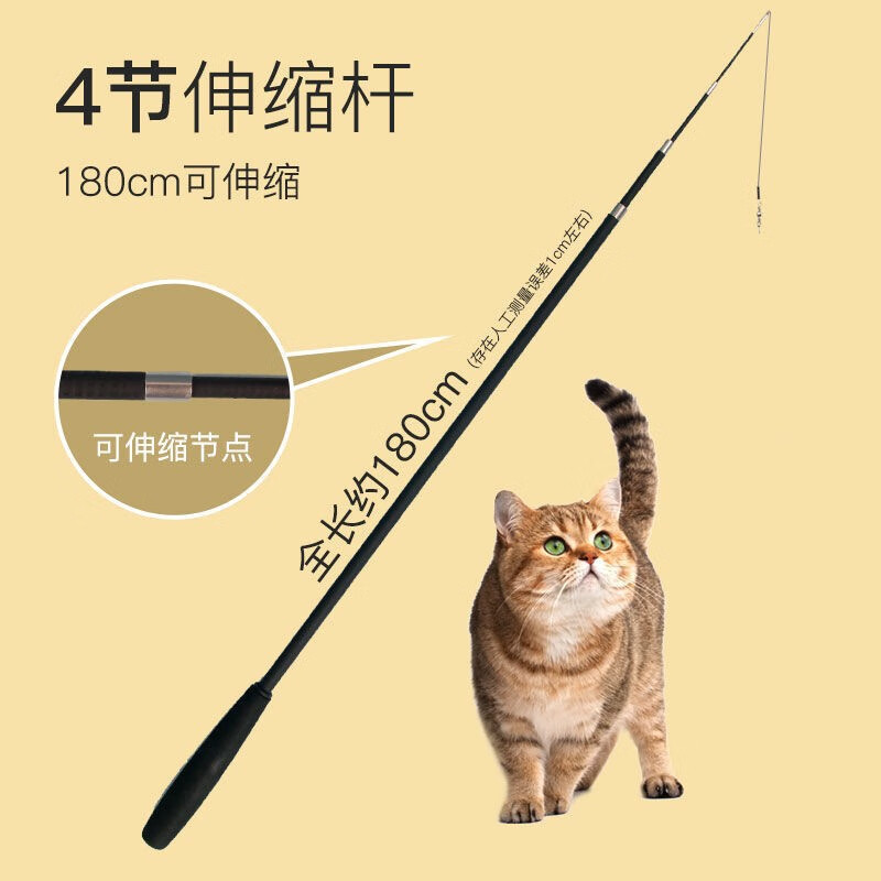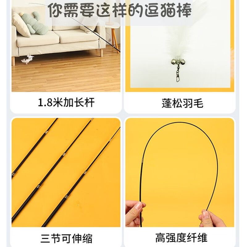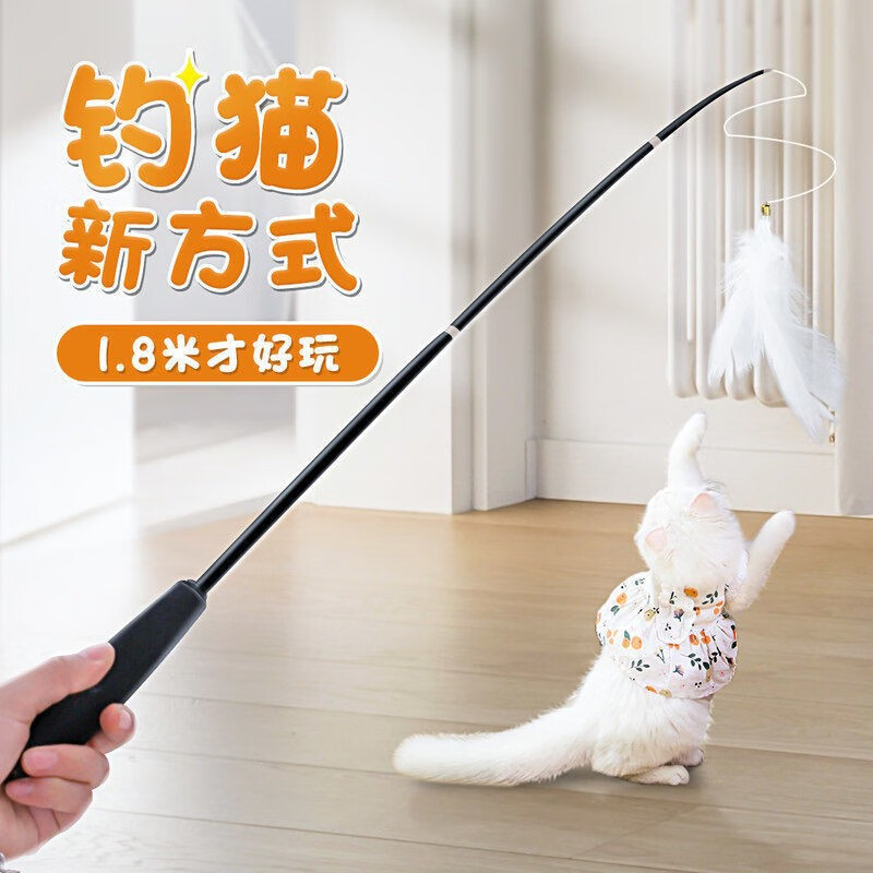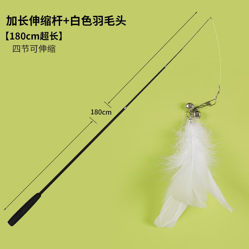瑜品佳【1米8超长可伸缩】逗猫棒钓鱼杆带铃铛 懒人自嗨解闷逗猫神器可替换羽毛头耐抓咬小幼猫咪玩具宠物 逗猫棒(单杆 白色羽毛头)