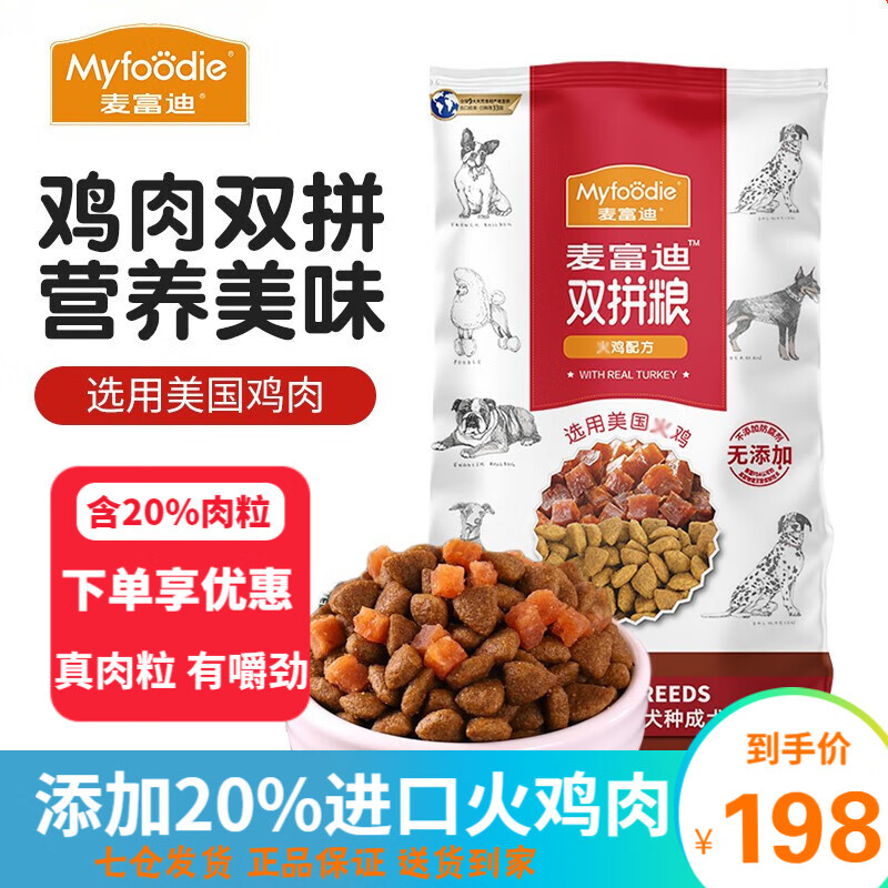麦富迪狗粮 鸡肉双拼狗粮通用型成犬粮泰迪贵宾萨摩金毛挑食鲜肉粮 成犬火鸡双拼粮10kg