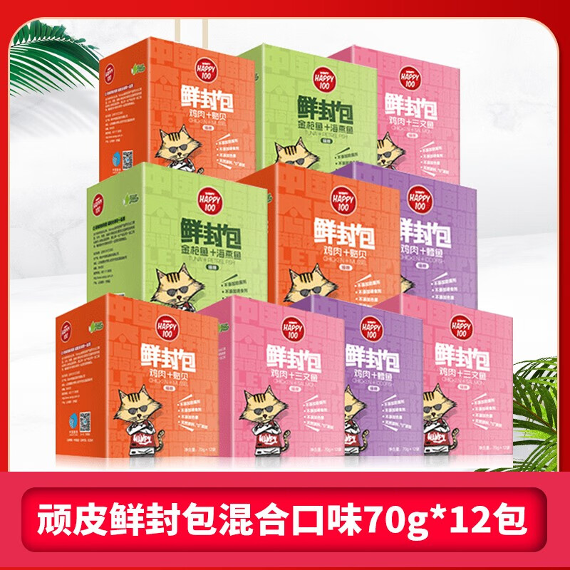 顽皮猫用鲜封包湿粮包鸡肉金枪鱼猫罐头成幼猫通用妙鲜肉粒包猫咪零食70g*12包 混合口味