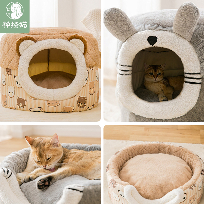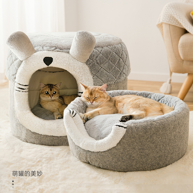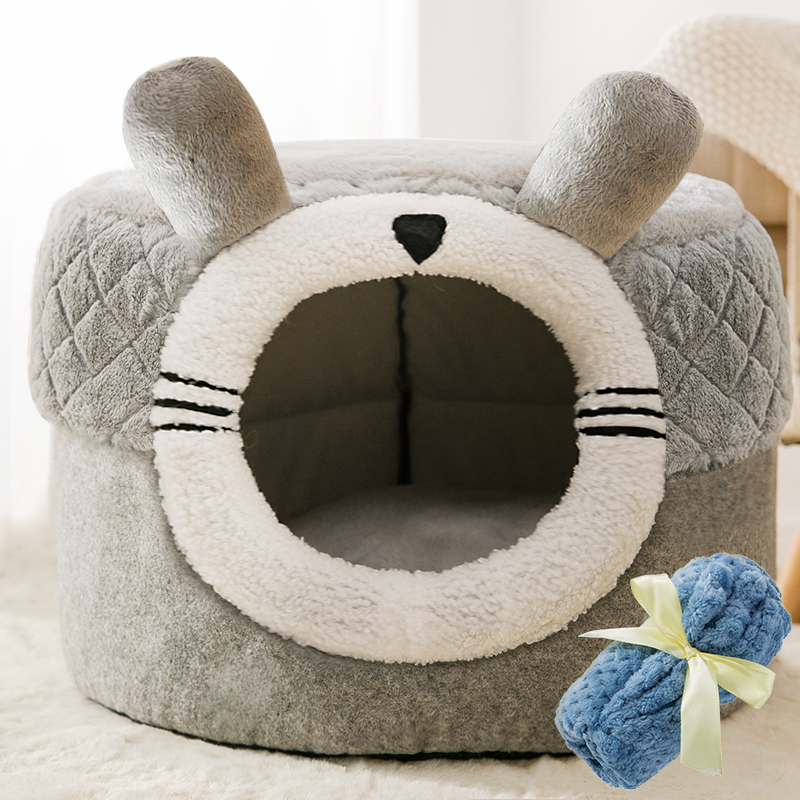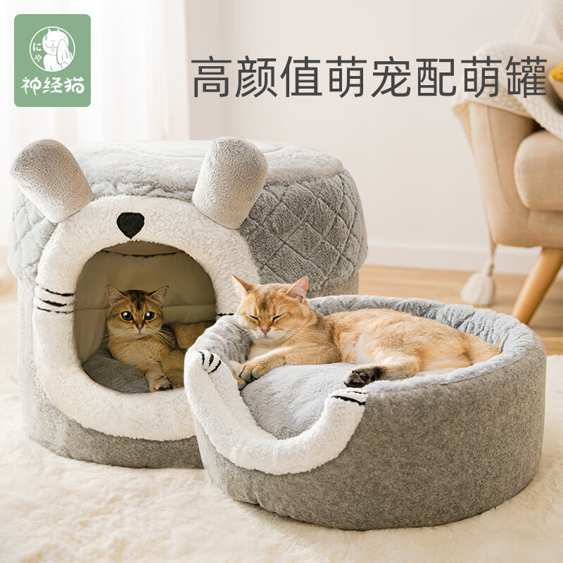 嬉皮狗 猫窝冬天冬季封闭式猫床幼猫冬季保暖窝猫咪宠物窝猫屋猫咪用品 灰色龙猫【搭配毛毯】 M-【15斤内猫咪】92%宠主的选择