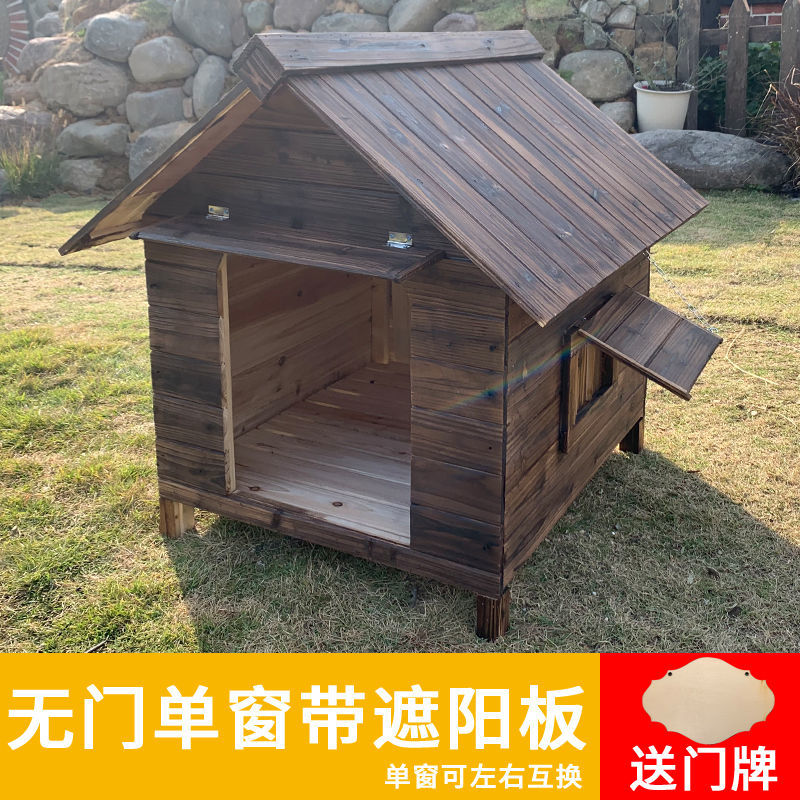 四季通用木制狗窝户外防雨宠物窝室外狗房子型狗舍保暖大型犬狗屋 无门单窗 遮阳板 小型(42*35*38)仅适用猫