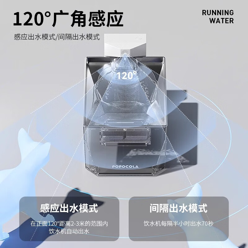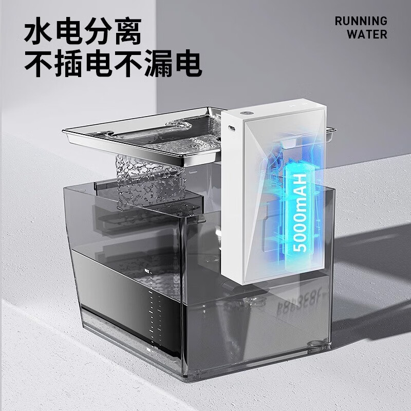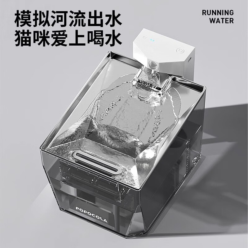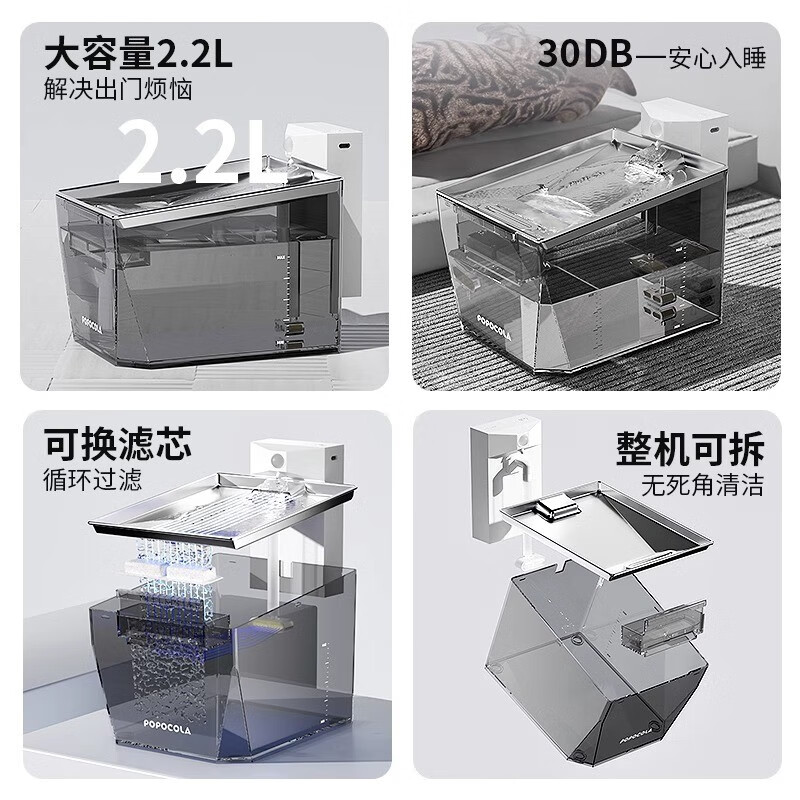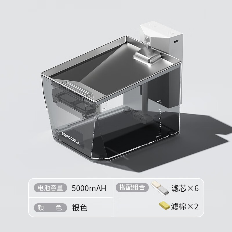 POPOCOLA猫咪饮水机不插电自动无线循环流动喝水器水盆喂水宠物饮水器 银【5000mAH 滤芯*6 滤棉*2】