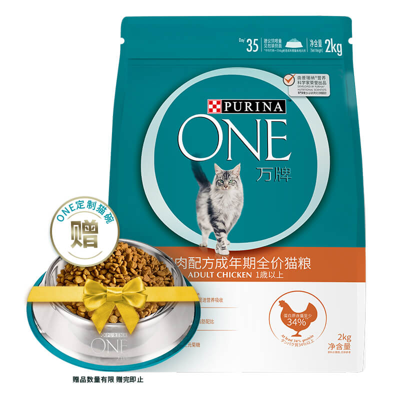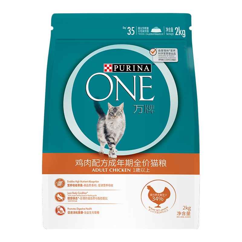ONE(万牌)猫粮成猫2kg 鸡肉配方 ONE猫粮理想体态易吸收营养全价猫粮