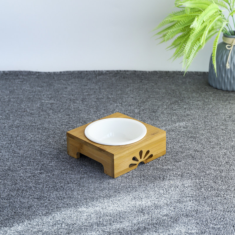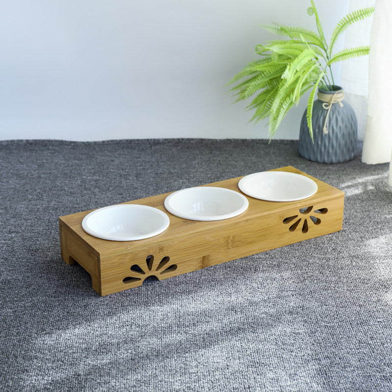 高端陶瓷双碗不打钢猫p粮食盆防锈翻防宠出实木餐桌慢食碗溅物奢