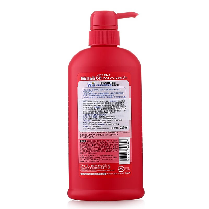 日本进口狮王(lion)宠物沐浴露 每日洗二合一香波柔和花香型狗狗沐浴露 每日洗犬用柔和花香型550ml