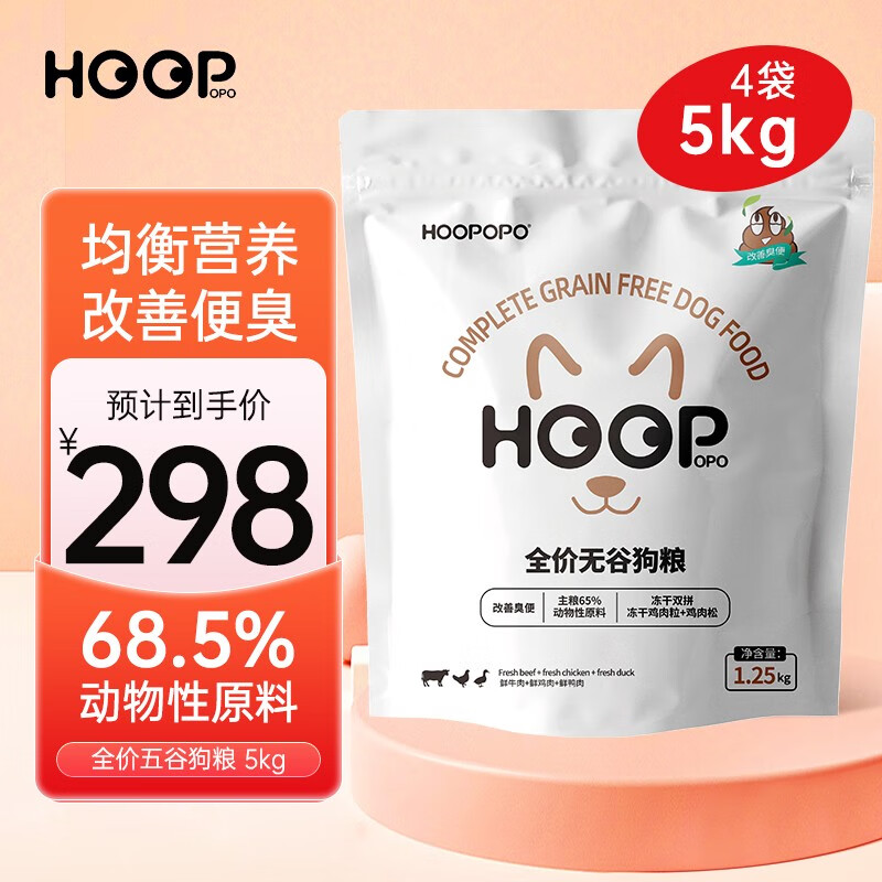 HOOPOPO狗粮 泰迪比熊柯基金毛成犬幼犬通用犬粮 全价无谷中大小巨型犬冻干粮 【超值推荐】5KG 全龄 通用