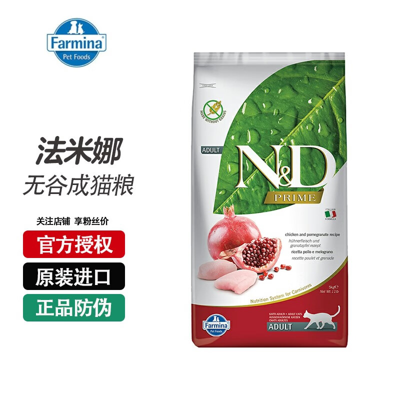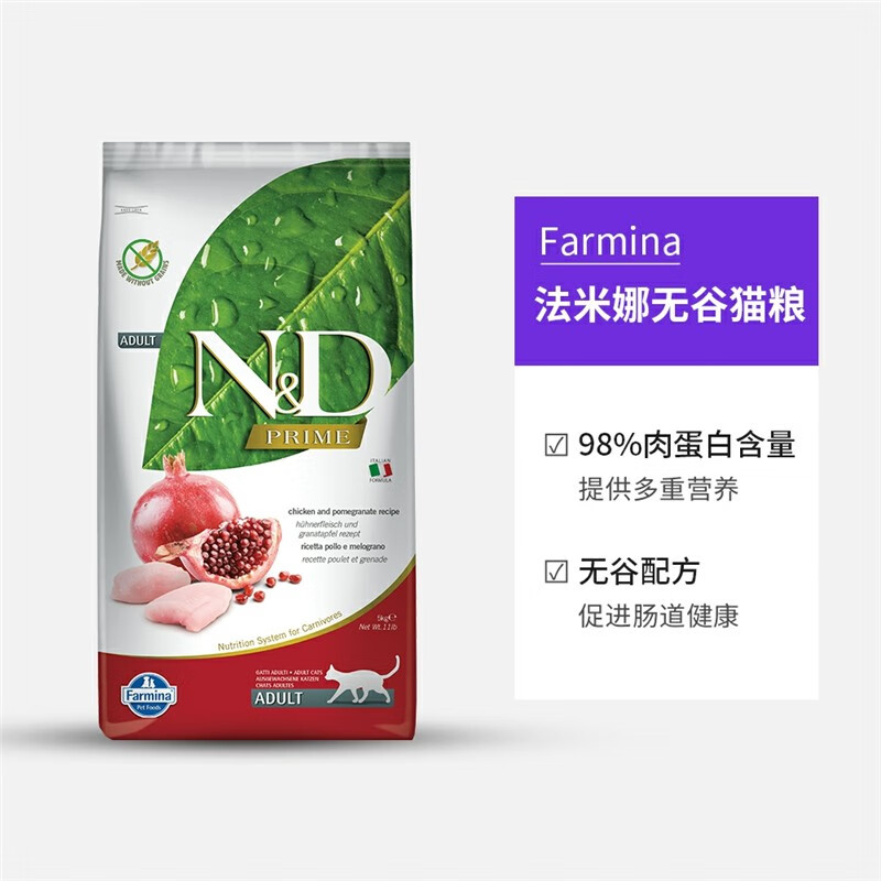 法米娜猫粮成猫粮石榴鸡肉法明娜猪肉苹果鲱鱼甜橙 精华无谷系列【鸡肉石榴】成猫粮5kg