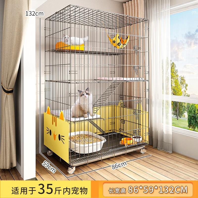 蔻丝折叠免安装加粗猫笼子家用大号带厕所一体防外溅砂室内省空间猫笼 超大四层【83*59*132】自由空间 至尊款【猫砂盆带铲 瞄舍款】